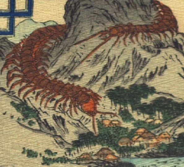 Ōmukade (大百足, Ōmukade) is a very large centipede-like yokai that lives in the mountains near Lake Biwa, Shiga Prefecture.
